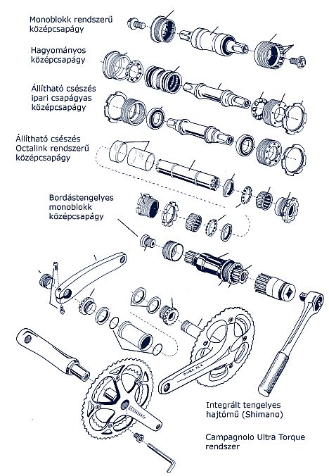 Az Octalink rendszerű bordástengelyes középrész és hajtókar már a legmodernebb megoldás, azonban a legtöbb kerékpárt még mindig a négyszöges tengelyekkel szerelik.